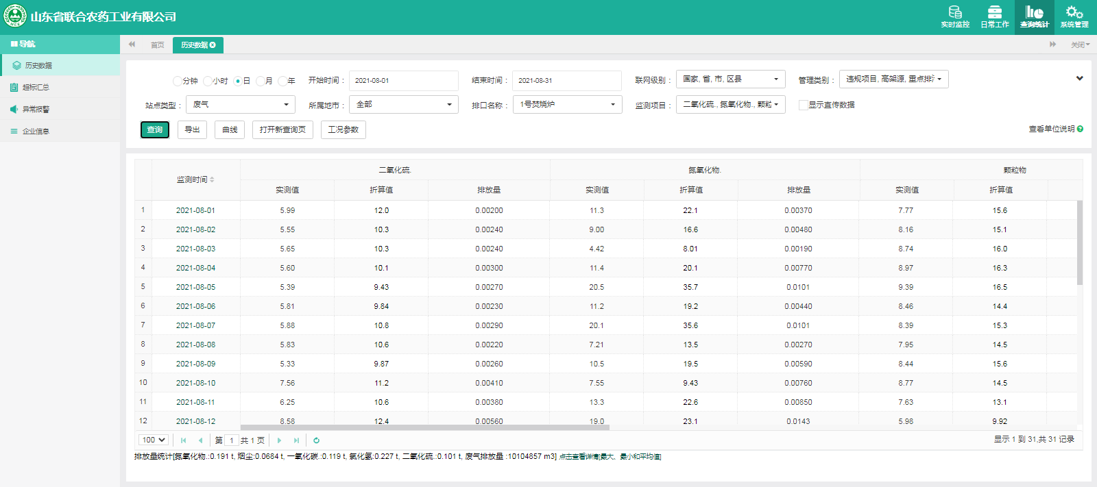 排污许可证核定的排放总量分别为:化学需氧量3.597吨/年,氨氮0.6吨/年,颗粒物17.349吨/年,二氧化硫51.325吨/年,氮氧化物125.675吨/年,VOCs 53.0387吨/年。